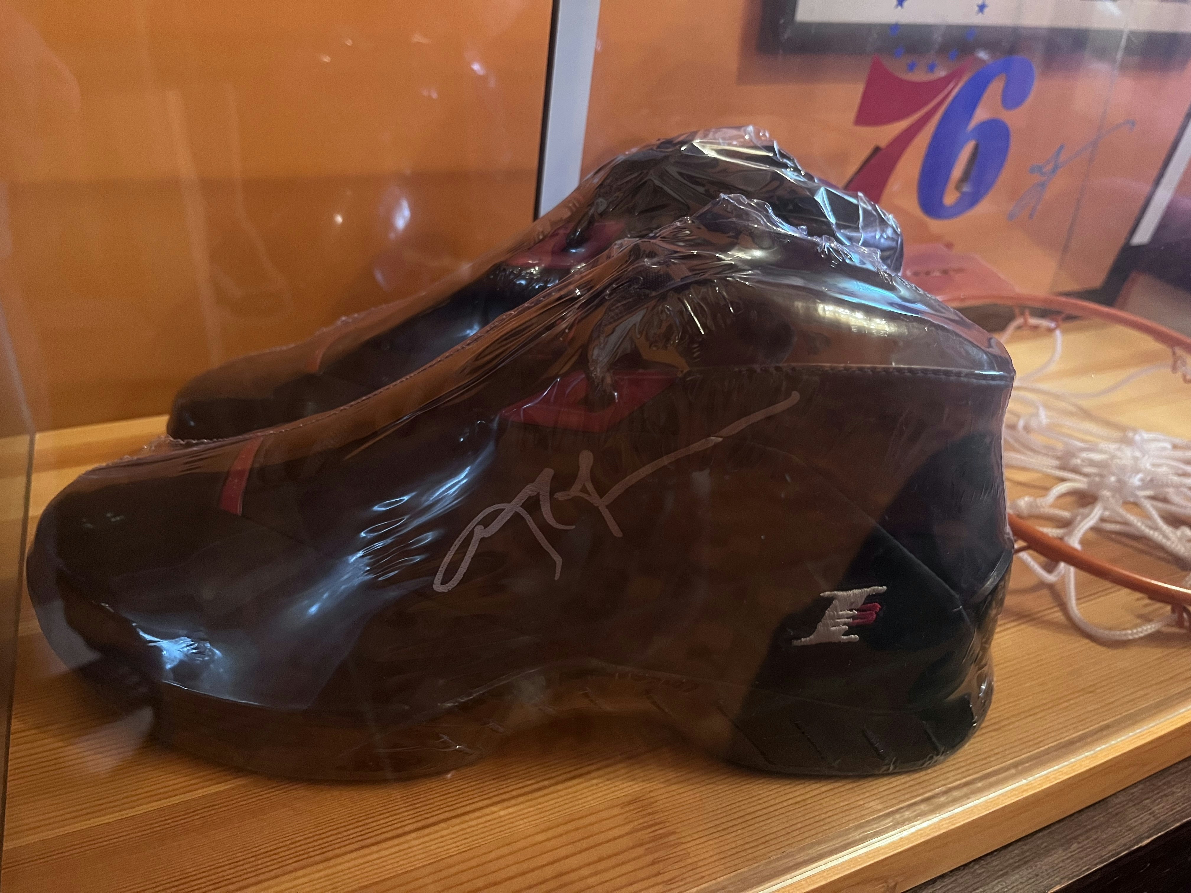 Signed basketball jersey in museum display case with authentication documentation